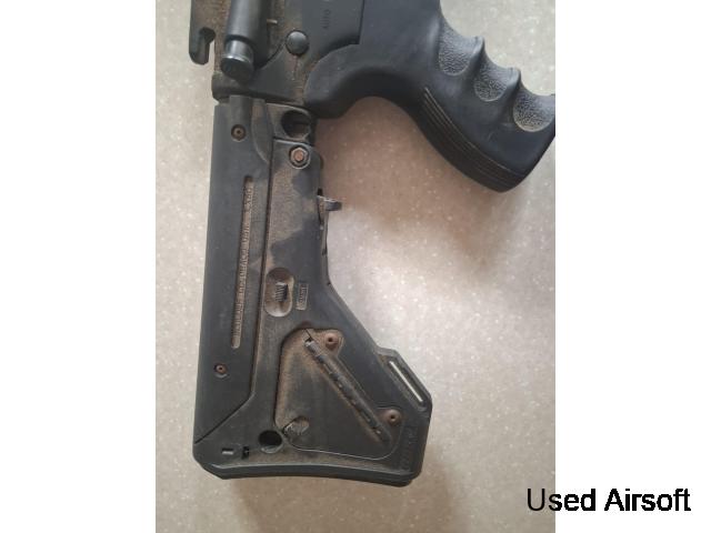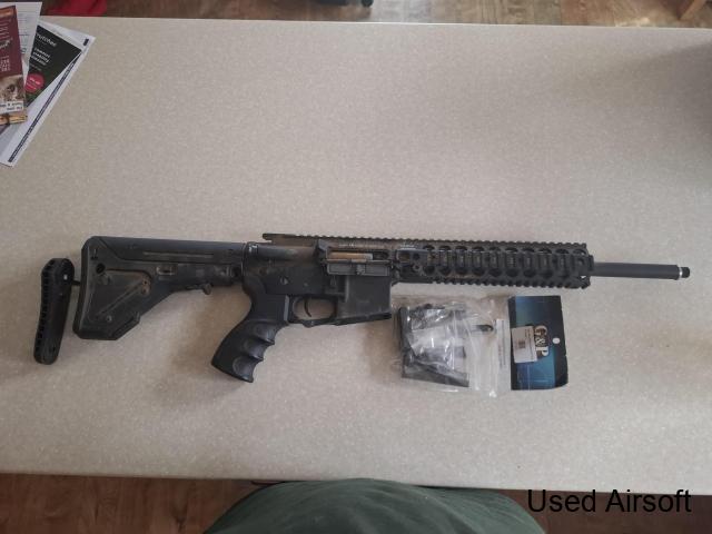 Now onto the good stuff. It's a really nice body kit in perfect condition, (I think it's called MBR) featuring an all in one upper receiver and rail system. It's a single solid piece of aircraft grade aluminium from front to back. It has a genuine Magpul UBR stock and a tasty sniper pistol grip.