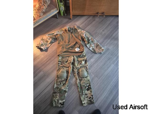 Chest rig unknown brand not sure on the size ether I’m guessing it would be a medium or large one of the two and yes it will come with the patch’s it comes with m4 mag pouches as well Collect from Rainham or post for extra
