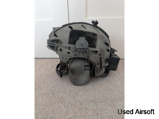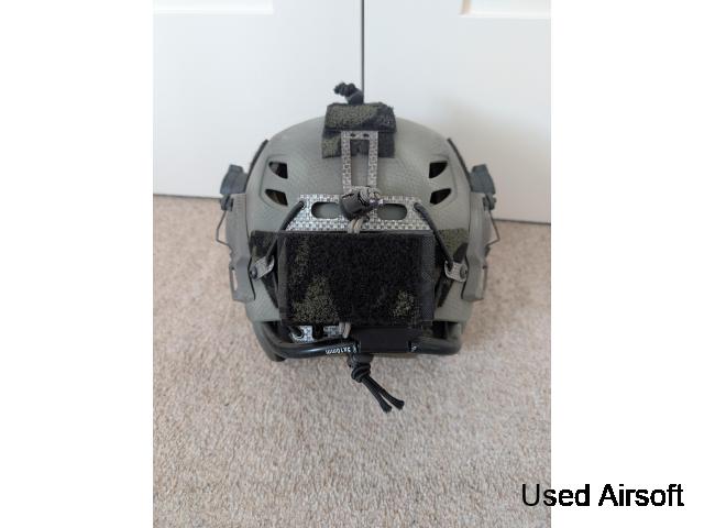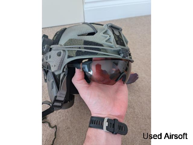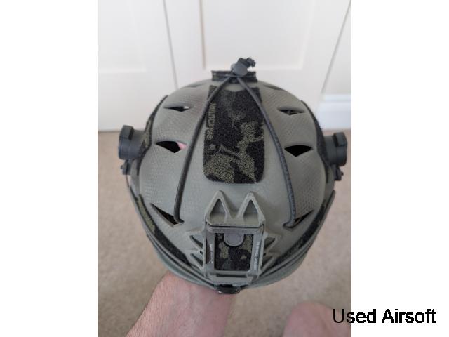 FMA team Wendy helmet in ranger green with memory foam padding and rotary retention system (padding has been machine washed)