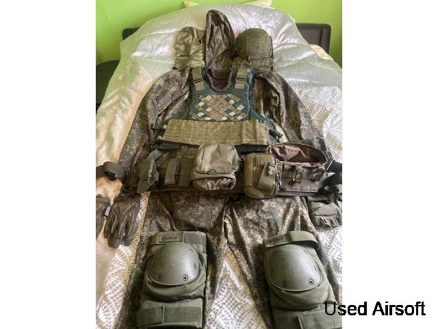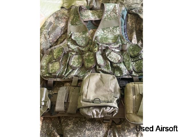 Here is my entire Russian Digi flora airsoft loadout I have made throughout 2020-2025. I was a massive fan and still am of the Digi flora camo however due to the war in Ukraine and generally needing money I wish to cash out. I got all of my items from the Russian store called Greyshop, its all listed as being used as I have used these in the past but have washed everything other than the combat belt. Everything is more or less XL-2XL sized as I am quite a big guy, so if you're anything smaller than a UK L the scout top and bottom might be a bit loose. Mostly everything is made by the Russian Mordor Tac company, which supplies the Russian army as well. Please don't involve any politics in this I was simply just a fan of the actual camo nothing else, now I'm trying to get rid of these items as they are quite rare these days. Generally, this is quite literally a full ready to go kit for someone who wants to use it for airsoft, rather than buying individual pieces slowly bit by bit.
