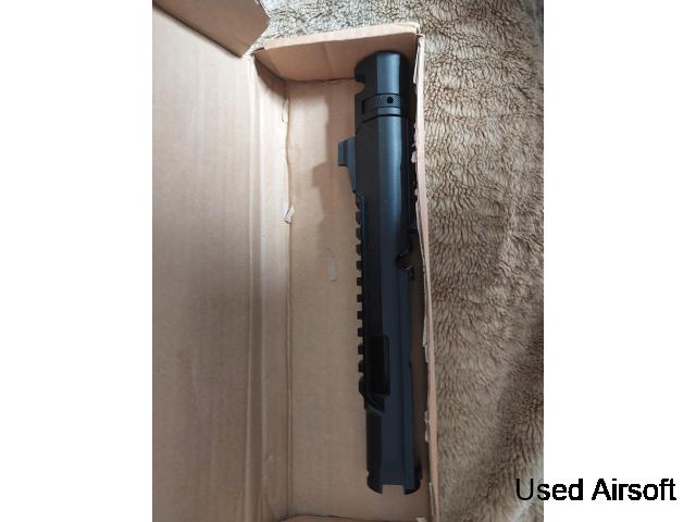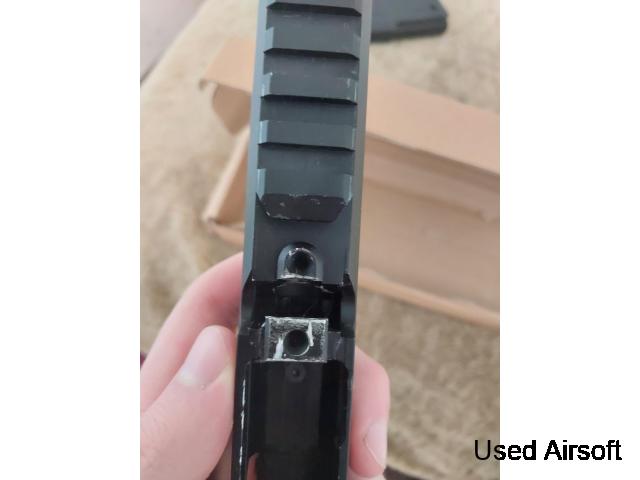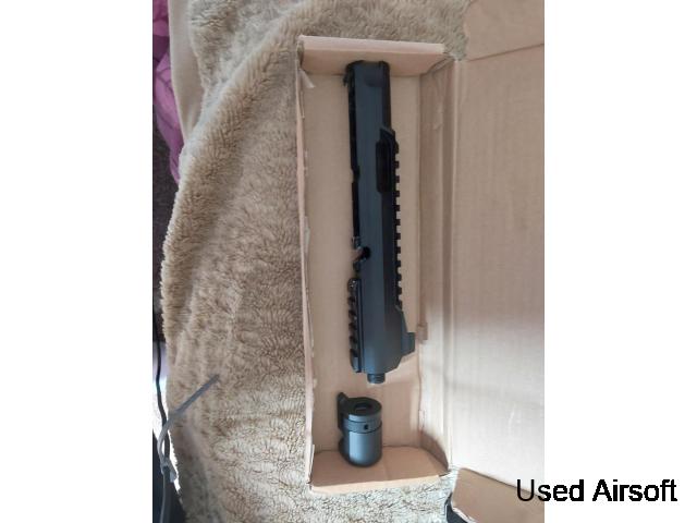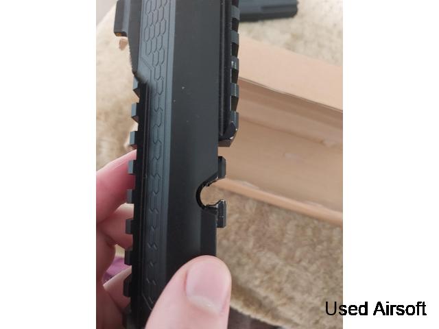 These are quite pricey but this one was bought damaged, where the hinge meets the lower receiever was damaged and bent. I hsve bent it back into shape so it does fit an app01 lower but the black finish has been damaged.