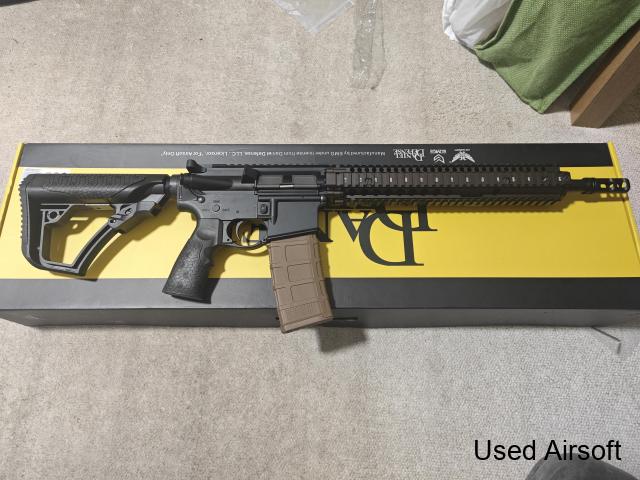 Started as a vmp2 sd. But wanted to do a m14 ebr mini build. Upgrades are a unicorn barrel, maple leaf hop rubber, sabre tensioner, with the tdc shoots very far and accurately. Inside is a stock nozzle, but also have a unrestricted nozzle as well. Different pistol grip. Extended outer barrel, foregrip, peq15, with ligh...
