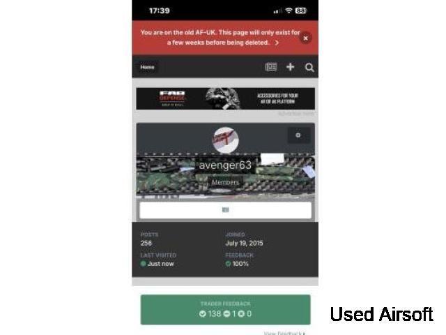 note: USED AIRSOFT "CONTACT SELLER IS DISABLED" YOU NEED TO EMAIL ME OR USE THE CONTACT NUMBER im not a retailer so no refunds, returns or warranties payment by bank transfer, paypal friends & family or cash on collection only However, for your peace of mind here is my airsoft forums uk site, 138 sales 100% feedback. Airsoft forum UK has just updated its system and wiped everyones feedback, so i have lost 10 years worth, their answer was take a picture before its wiped so thats in the advert pics below. I can do a test video once a deposit paid for your piece of mind