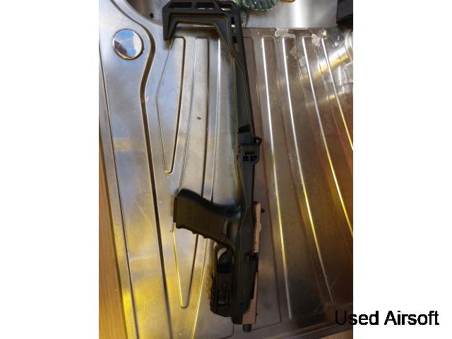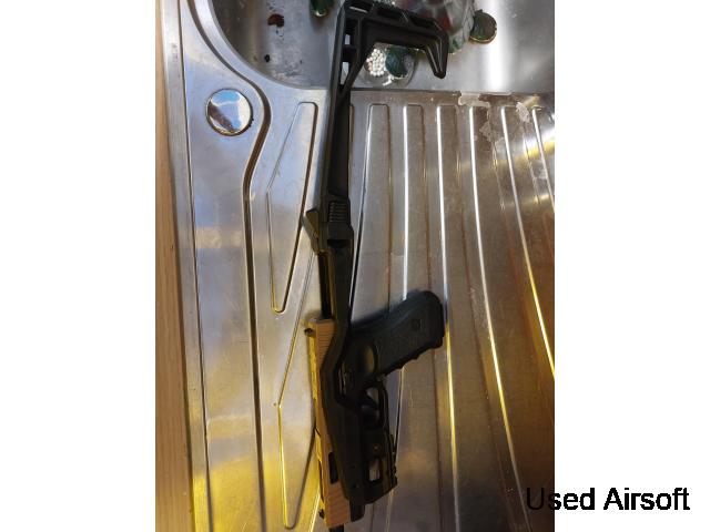 Army Armament G36 GBB Good Condition Feeds and fires perfectly Previous Two-Tone but sprayed black Missing Fire selector switch on right side, sometimes switches to Full auto while in semi Comes with x2 GBB Magazines (1 leaks) Collection from Lewisham, London Or can post for £18