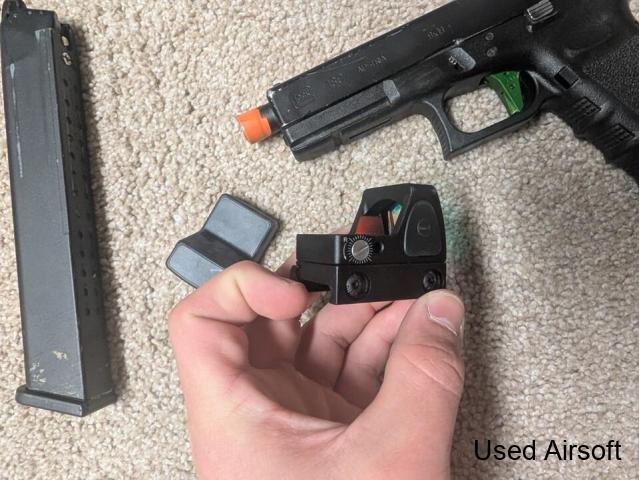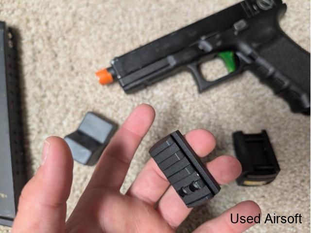 For sale as a bundle is Tokyo marui airsoft, Mask, Tactical Vest, Air Tank Set, tracer unit, bbs, mags. Gun in very good shape and gears are in superb condition.