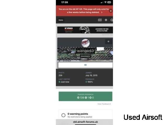note: USED AIRSOFT "CONTACT SELLER IS DISABLED" YOU NEED TO EMAIL ME OR USE THE CONTACT NUMBER im not a retailer so no refunds, returns or warranties payment by bank transfer, paypal friends & family or cash on collection only However, for your peace of mind here is my airsoft forums uk site, 138 sales 100% feedback. Airsoft forum UK has just updated its system and wiped everyones feedback, so i have lost 10 years worth, their answer was take a picture before its wiped so thats in the advert pics below. I can do a test video once a deposit paid for your piece of mind