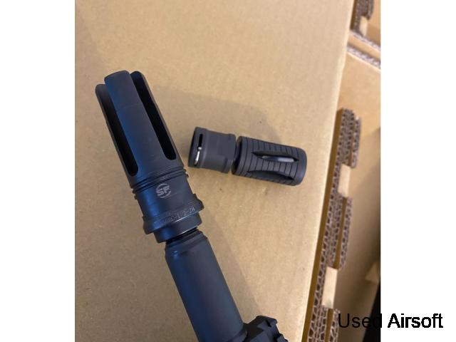 Surefire 5KU SOCOM 7.62 RC Silencer (14mm CCW) (Black) and its steel flash hider: in excellent condition