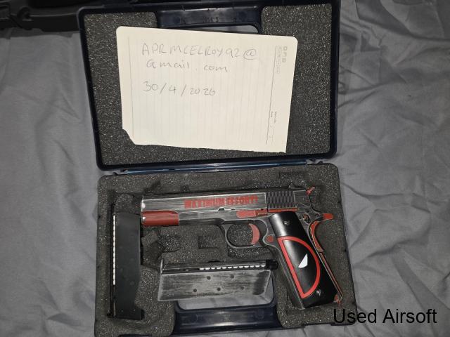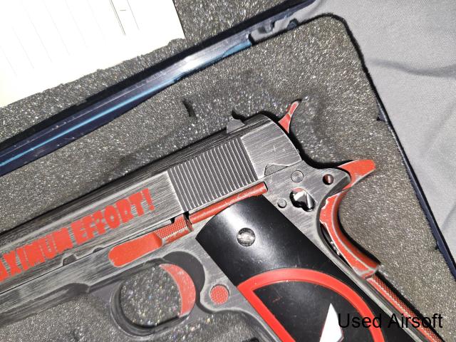 My deadpool 1911 gas blow back pistol, works fine but needs a new safety latch, see image