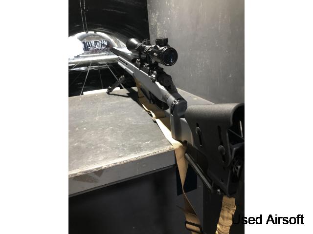 I am selling my project Ares ast01 sniper in grey. This rifle comes with a scope, three magazine, BBs and a gun case. The upgrades added to the is new trigger sears a new spring and a new barrel. I am selling the rifle as i don’t have the time to play anymore and fell it’s a waste for it being kept away. The rifle is in amazing condition and has only been played a two times.. The rifle shots precise and accurate.