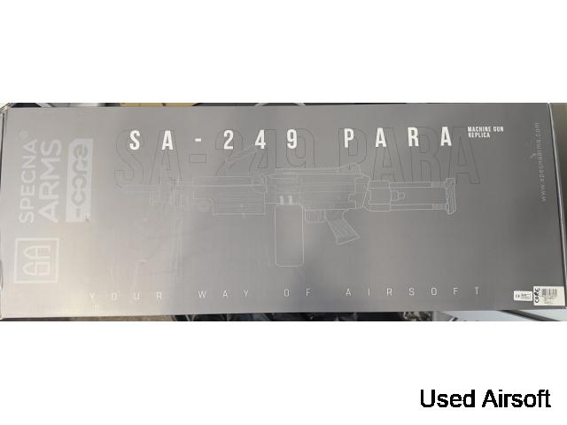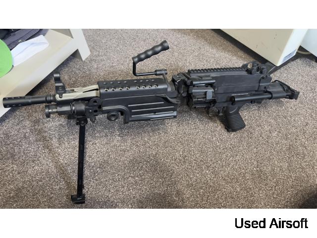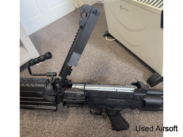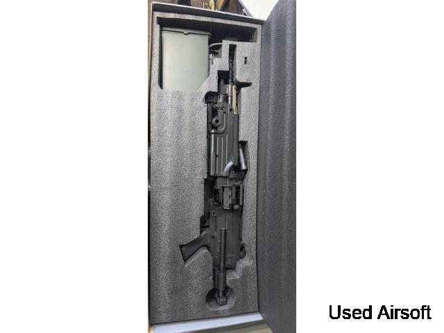 Here I have my SA-249 para lmg retail at £300. Only used a couple of times. The springs on one of the bipod legs has snapped so will need replacing. Has fitted new tight bore barrel, nub and hop up. Original parts included in the box. Couple issues with it feeding it will misfire occasionally since fitting the hop up may need tweaking. Parts fitted were approx £80. Selling for £190 as I need the space for new RIF.