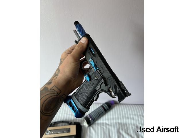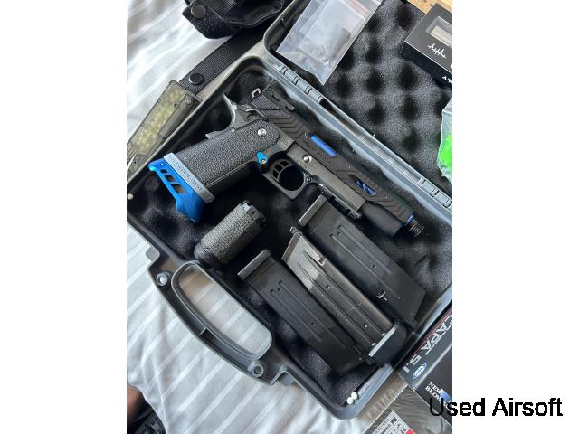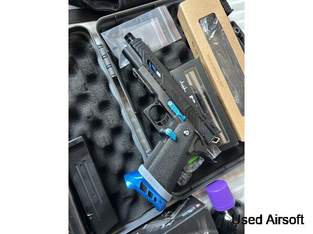 I bought this airsoft pistol a little over three months ago. I haven't used it in a shooting range; I've only played with it at home. It's in excellent condition, without any dents or scratches. The box and all accessories are still there. It also came with some unused Vorsk BBs, a holster, and a tactical belt. I usual...