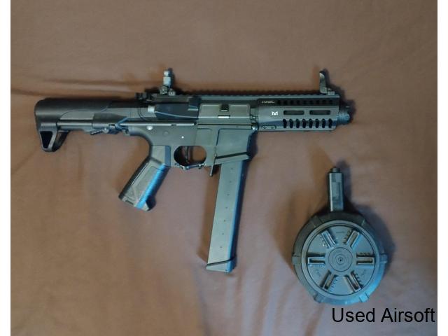 G&G ARP9 in black. Has hardly been skirmished so in good condition. Comes with the original hi-cap and a drum mag.