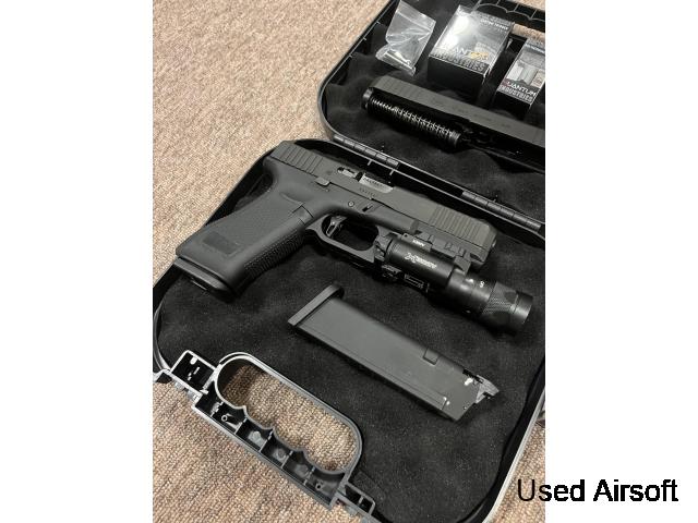 Im selling as it’s been sat in a case and I just can justify keeping it anymore. Would rather someone have some fun with it. If you know Umarex GHK Glocks then you know that the stock trigger system is very strange and doesn’t pull well and sticks, unlike most Airsoft pistols. Thankfully this has the 4UANTUM trigger upgrade and performs much better with a crisper pull.