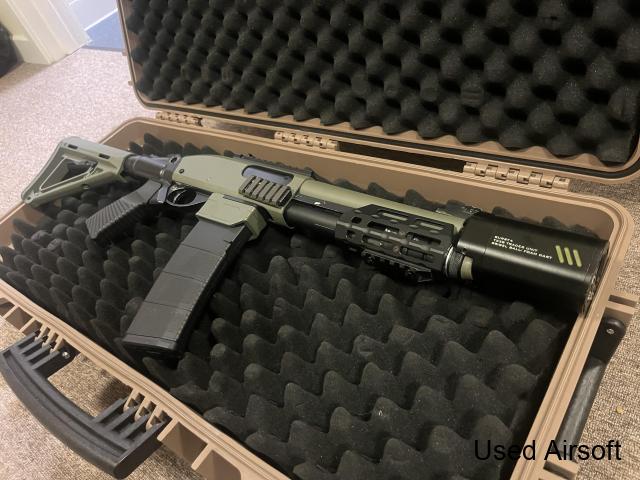 You can fit a handgrip underneath to pump it which makes life so much easier. I used the picatinny part from the left side of the RIF hence why it appears to be missing. This will be fitted back on before sale.