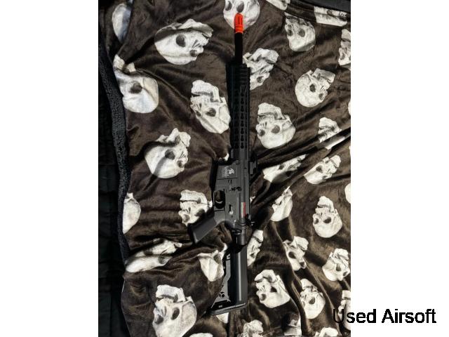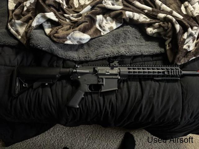 Used twice and completely honest it just not for me its basically brand new have all the attachments for it 4 batteries 4 extra mags 1 comes with the rifle. Comes with a torch and tracer phexbox green laser and torch and red dot sight Brand new paid £475 but would try to get the same back but know that would be hard as...