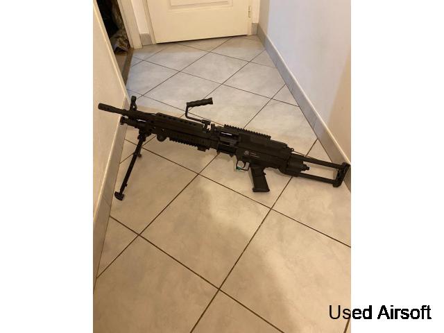 M249 para in ABS original v2 gearbox adaptable lipo or nihm battery The replica was perfect for 5 games, never had any issues, with an enormous rate of fire and an 11.1v LiPo battery. The replica is sold with 2 Ammoboxes Ammobox charger Cable with finger pressure for the ammo box original box