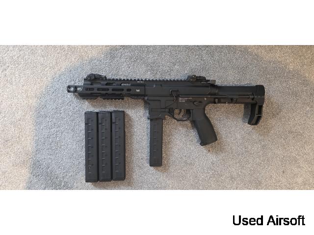 Nearly new mod 3, functions flawlessly. Comes with 4 mid cap mags and a 7.4v. Ready to skirmish! No original box but can pack safely or collection.