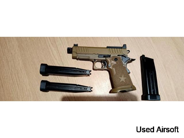 I have used for one game, bought of a friend which had been used for 3 games. Has a slight chip (pictured) does not affect usage at all. Comes with red dot sight, battery, grip, loud-encer and one high cap mag. Brilliant little gun, purchased for my first CQB game but realised that CQB isn’t for me, and purchased a sni...