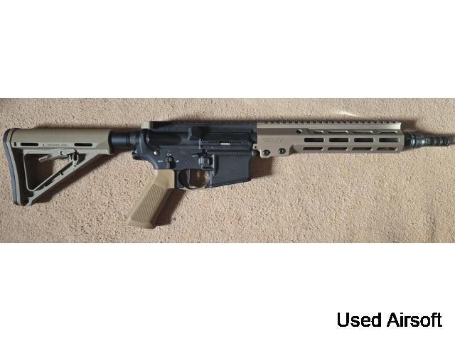 FULL METAL (slide, frame/receiver, magazine), absolutely everything except grips which are polymer. Approx 1.2Kg weight. It does not get more realistic than this. Custom silver/black colour-way and polished steel barrel, shoots great, very strong recoil, one gas tight magazine (missing baseplate). I cannot emphasise en...