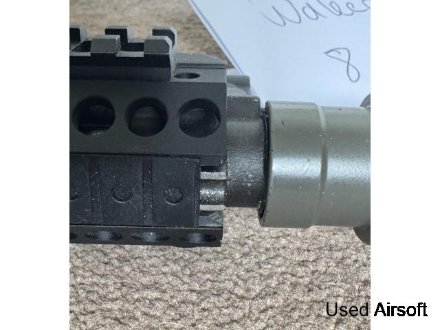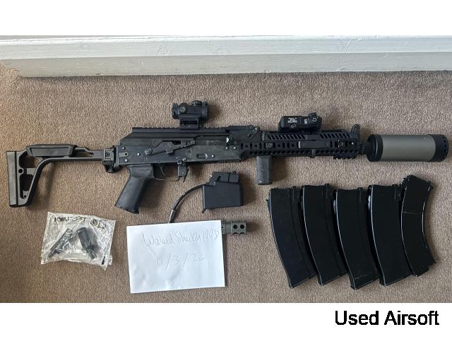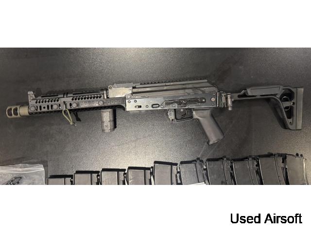 Built like a tank with heavy recoil, especially on HPA, gas piston has been modified to work with LCT gas tube. Currently set to 1.15 J on 0.32 on 95 PSI. Will NOT come with red dot, perst or putnik as pictured ( for display purposes )