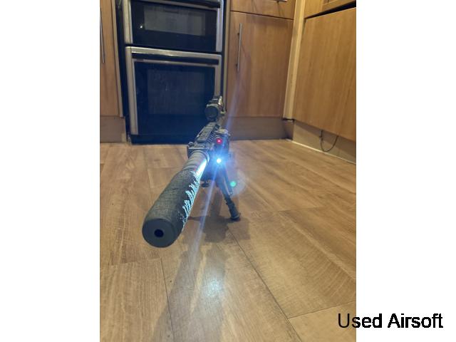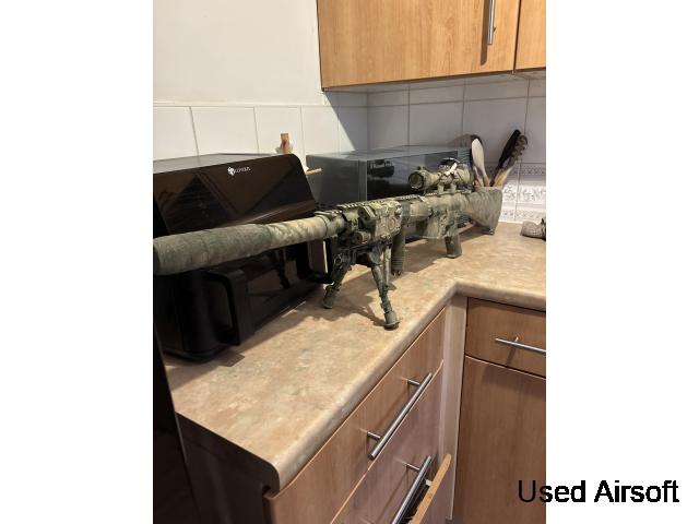 The gun is absolutely immaculate, I think I have used it once in game!!! Other than that it’s in been fired to gauge were the RIF was at after upgrades!! I have recently customised this RIF to try and replicate the lone survivor M110 semi auto sniper rifle. It has had over £180 worth of upgrades on top of a £220 stock RIF to begin with. I’m quite fixed on the price but I am open to offers I have all boxes of all upgrades applied to the RIF if needed for proof but this thing will throw out .32s like it’s nothing and the range for a semi automatic is 80ms + accurately shooting, could possibly throw heavier BBs out, but I love a RIF with .32s. My numbers above offers through WhatsApp only with any queries thanks.