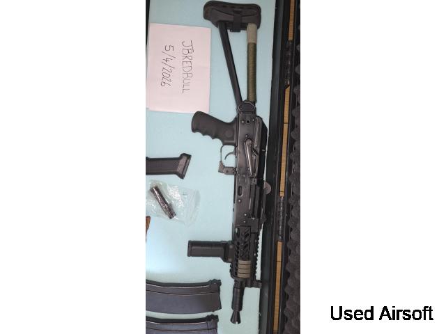 Here for sale i have my GHK AK74u it come with zanitco front rail, zanitco grips, zanitco muzzle not pictured, another air nozzle. Standard grip and part wood front rail.