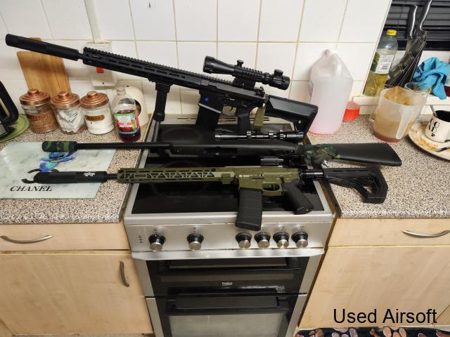 JG bar 10 wolverine bolt m conversion 430mm 6.03 barrel Laylax hop unit Barrel stabilisers Scope Super macron 70 degree bucking Omega nub