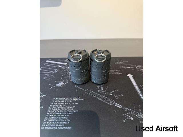 2x reusable e-raz pull pin gas grenade in good condition (grey)