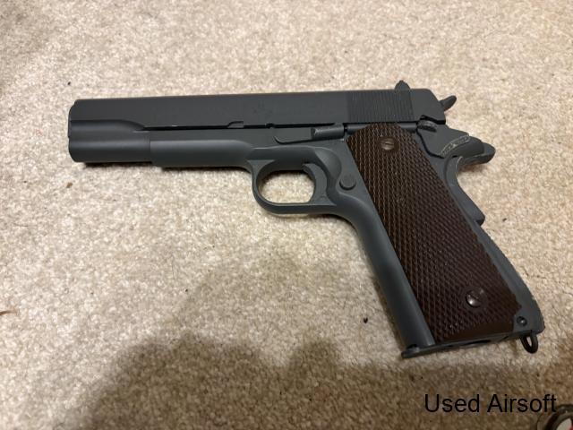 Nighthawk custom M1911 co2 Very good condition Comes with 2 mags 1x mag original 1x mag leaks 1x spare barrel 30x co2 12g canisters Does not have original suppressor Collection from Swansea as can only put Hereford as location or can post as buyers cost