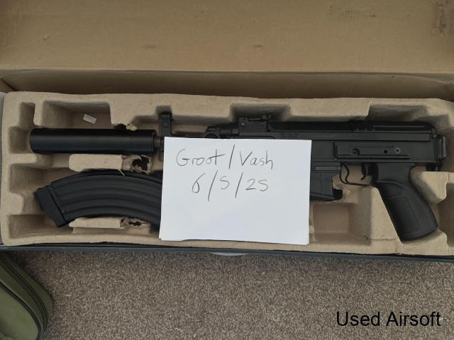 I'm selling my Snow Wolf Thompson replica. The handle, stock and handguard are made of wood The replica works very well. I'm selling it with a 7.4V ATM (PEQ 15) LiPo battery and four magazines: two metal high-capacity and two plastic mid-capacity.