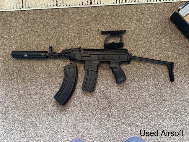I sell my lovely outdoor gun with vest and face mask Bundle Ideal for beginner or even advanced player Upgrade : ASG Ultimate Mil-Spec A -Spring M110 6.02 Prometheus inner barrel Lonex A1 35000 RpM motor 2x40mm fixed zoom red dot Hop up ruber maple leaf On request and we can discuss about the price ; Bestsight 1-5x24 R...