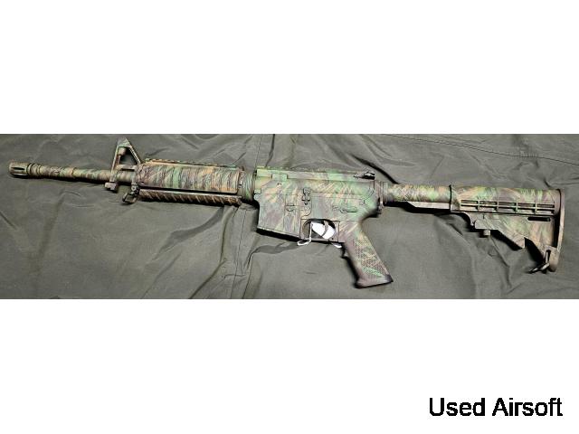 This G&G CM16 Carbine has recently been custom painted in a woodland camo, making it ideal for outdoor skirmishes and players who want that extra level of concealment.