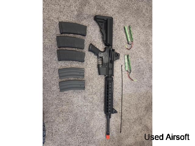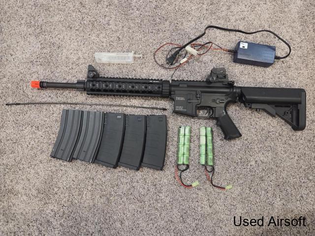 The KWA Performance Industries RM4 SR10 Full Metal Airsoft Rifle Gun is a high-quality and durable airsoft gun that is perfect for outdoor sports enthusiasts. Made by the reputable brand KWA in Taiwan, this rifle boasts a sturdy construction with features like a metal body and Mag Works magazine for reliable performance. The KWA KM4 model offers a smooth and accurate shooting experience, making it a great choice for sport shooting ranges or casual backyard fun. This Rifle comes with a speed loader, a universal smart charger, 2 high cap magazines, 3 mid cap magazines, a cleaning rod, and 2 batteries.
