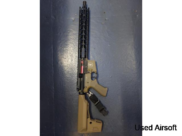 This VFC VR16 Fighter Carbine MK2 is characterized by: Color: Black Full metal Metal outer barrel CNC aluminum RIS handguard Upper Picatinny rail on the upper Adjustable and removable flip-up mechanical sights QRS polymer stock, adjustable in length (822/903 mm), housing the battery Ambidextrous metal end plate QD atta...