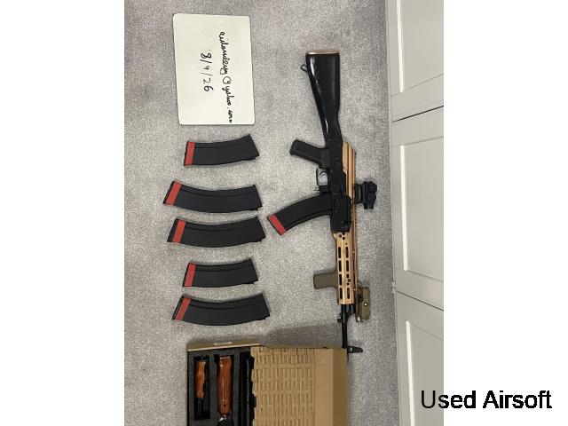 up for sale is a custom upgraded AK with a 5KU Sureshot Armament Group MK3 Chassis