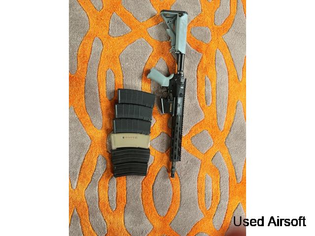 This, the latest SA-C19 is rocking Specna's HAL¹ ETU, boasting programmable fire controls and several quality-of-life functions built-in, all for barely more money than the original. The HAL¹ allows you to select binary trigger, AUG mode and sniper delay instead of semi-auto and semi-auto lock, 3-round
