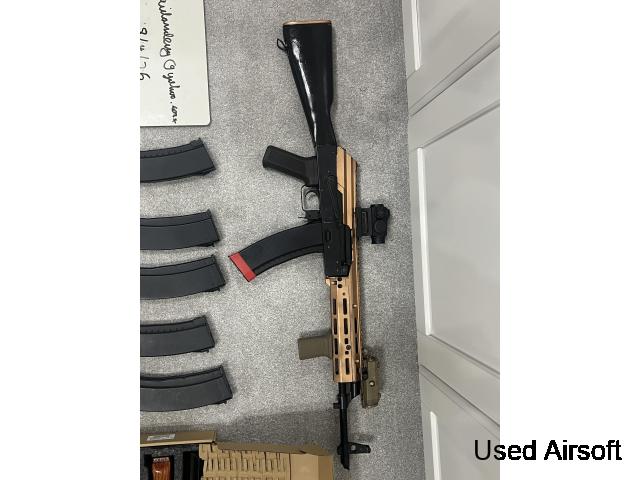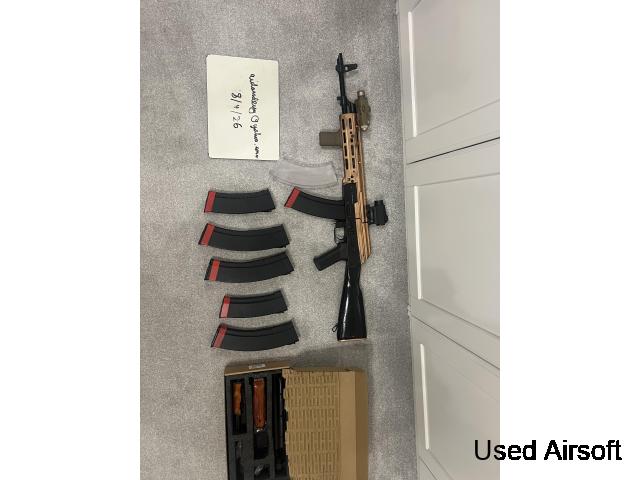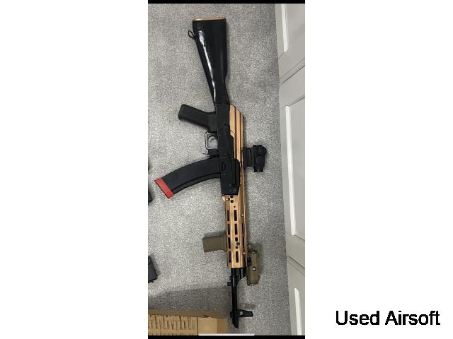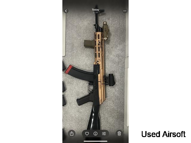 up for sale is a custom upgraded AK with a 5KU Sureshot Armament Group MK3 Chassis
