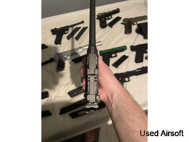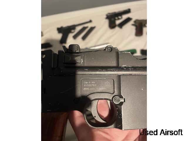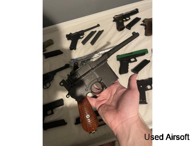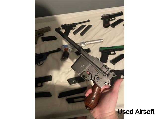 Got a bunch of airsoft pistols Located in Thetford so can trade if local or all for sales. Prices below: AAP Shinobi (1 mag) - £55 WE Hi capa (no mags) - £50 Tan 1911 (no mags) - £50 MOD Limited edition (1 mag) - £55 Mauser (1 co2 mag) - £55 Silver 1911 (1 mag) - £50 MTP EU Glock (1 mag) - £60 Revolver (co2, 6 shells) ...