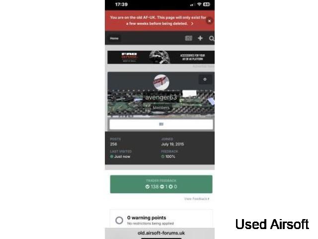 note: USED AIRSOFT "CONTACT SELLER IS DISABLED" YOU NEED TO EMAIL ME OR USE THE CONTACT NUMBER im not a retailer so no refunds, returns or warranties payment by bank transfer, paypal friends & family or cash on collection only However, for your peace of mind here is my airsoft forums uk site, 138 sales 100% feedback. Airsoft forum UK has just updated its system and wiped everyones feedback, so i have lost 10 years worth, their answer was take a picture before its wiped so thats in the advert pics below. I can do a test video once a deposit paid for your piece of mind.