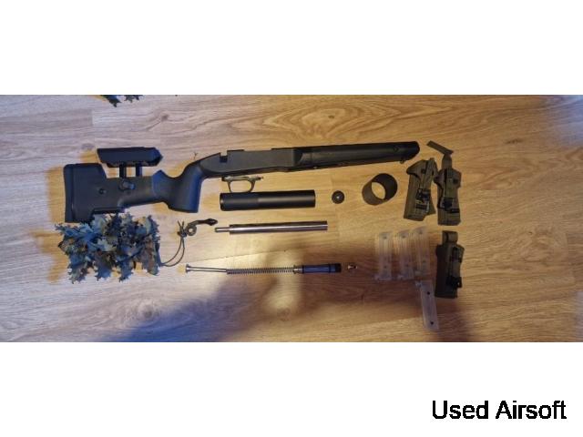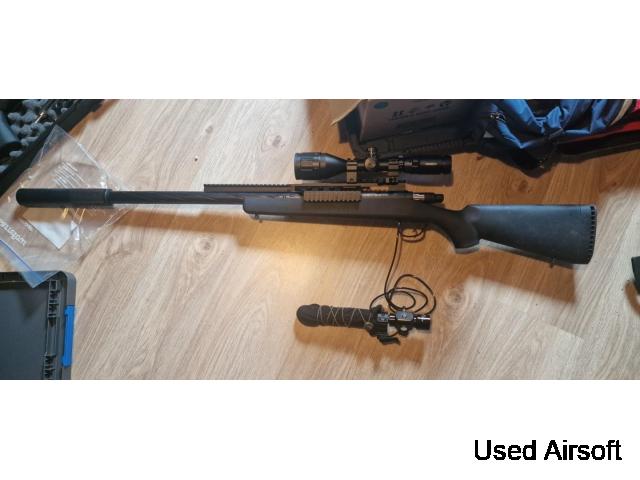Selling Novritsch SSG10 (VSR10 base) modified to HPA with a Mancraft kit. I used to play it with an 88g CO2 cartridge so as not to be physically connected to the replica, however the hose is long enough to play with a bottle.