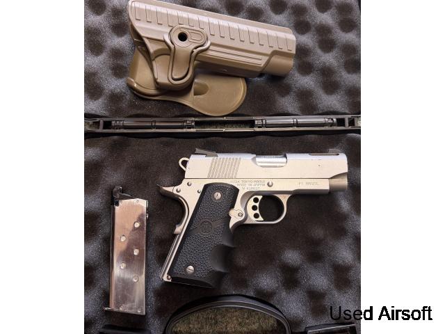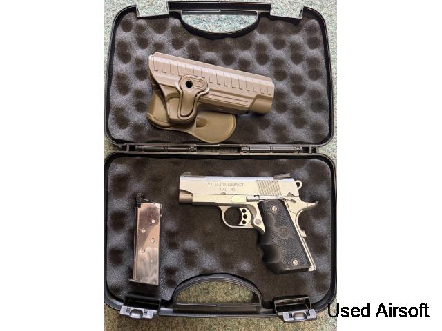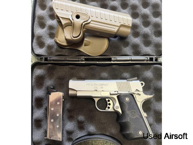 Boxed. Kicks hard on Co2, it has a nice trigger, much lighter than the GHK Glock. Immaculate Condition Steel SRC CUSTOM Glock 17 Gen 5 Cerakoted in metallic bronze. Silver steel barrel Comes with 1 Co2 mag Comes with 1 green gas mag Comes with 4 red dot sight plates to accommodate all makes. Overall cost was £340 pisto...