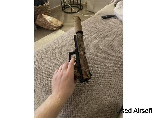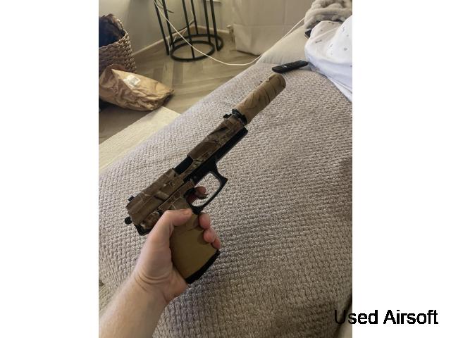 Asg mp9 full trades. Used for one game of cqb. Many wii tech spares, springs, metal nozzle, loads of valves for the mags, disconnector. Everything you need to keep it going. 3 genuine mags. Suppressor in the same used once condition Full asg brand new spare bolt assembly and springs Outer barrel to accept normal hop ru...