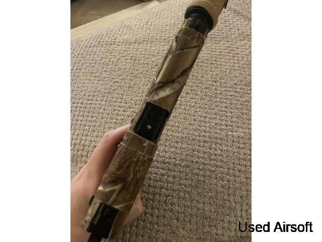 This G&G Levar is powered by gas but has been HPA tapped. Still have the original gas parts to convert it back to gas. Original size is 15inch and has been changed to 9 inch upper receiver and outer barrel. 6.03 precision inner Barrel 4uantum AEG bucking and nub Waldo dynamic npas nozzel BBA airsoft short stroke ki...