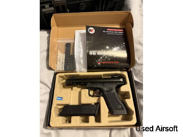 Boxed as new. Steel Glock with slide professionally cerokoted in tungsten grey. Steel barrel that has been professionally polished to bright silver steel. 2 mags. I x Co2 - 1x gas. 4 red dot sight plates. Looks beautiful and shoots great. Overall cost was £450 £300 Can post for £5 by tracked if required