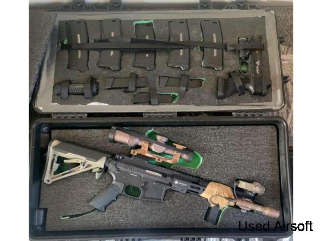More photos are available. This RIF is a laser best one iv ever owned but not had the time to play so its just wasted sitting in its box. Upgarded to shoot 60/70m on 0.36s consistent. More items included not in pics as can only upload 4 at a time.