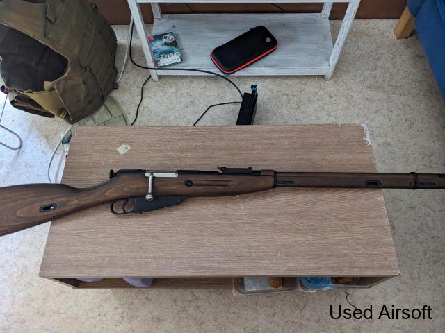 A new out of the box Double Bell Mosin Nagant which I received as an unwanted birthday present.