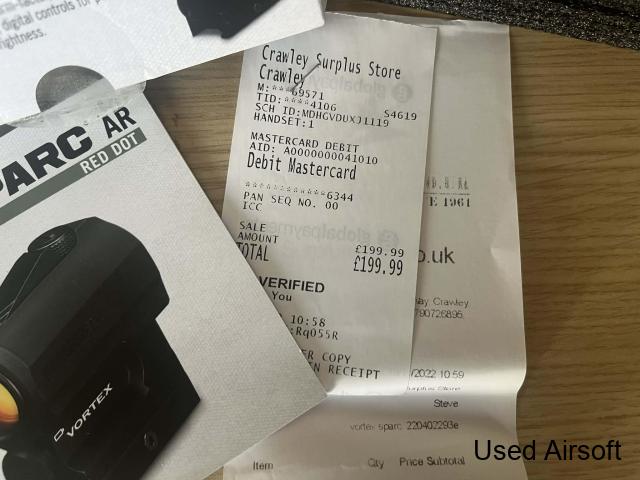 Genuine Vortex red dot sight with original receipt + lifetime warranty.