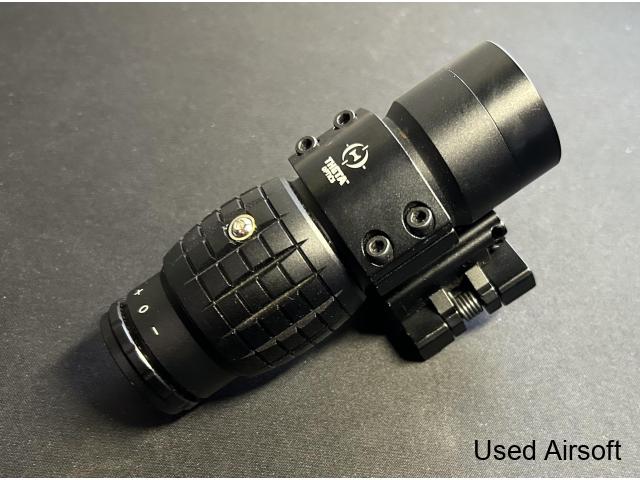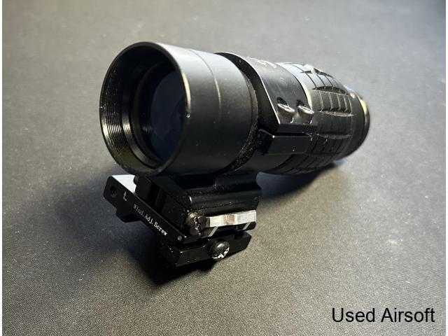 This optic is designed to fit behind your red dot and magnify the image and recticle by a factor of 3 giving you a better long range view.