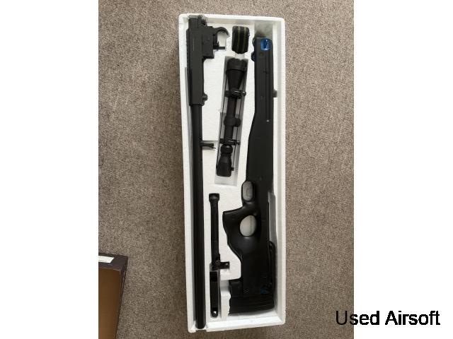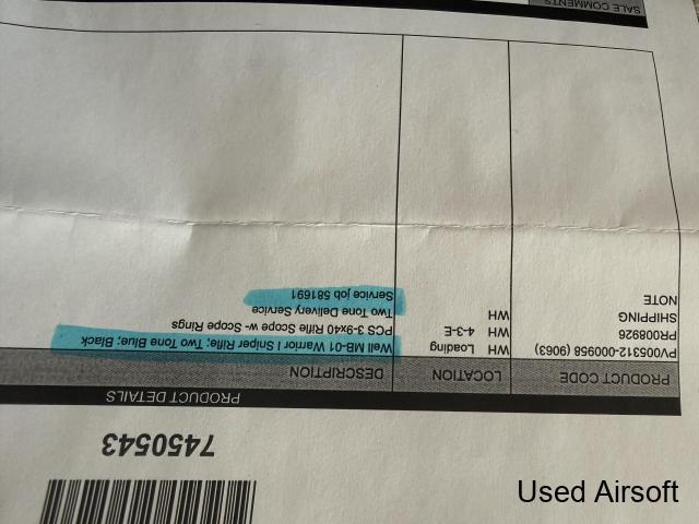 Well mb01 sniper comes with scope and the tripod how ever there is no attachment for the tripod. Been used in 1 match has strap and 2 magazines