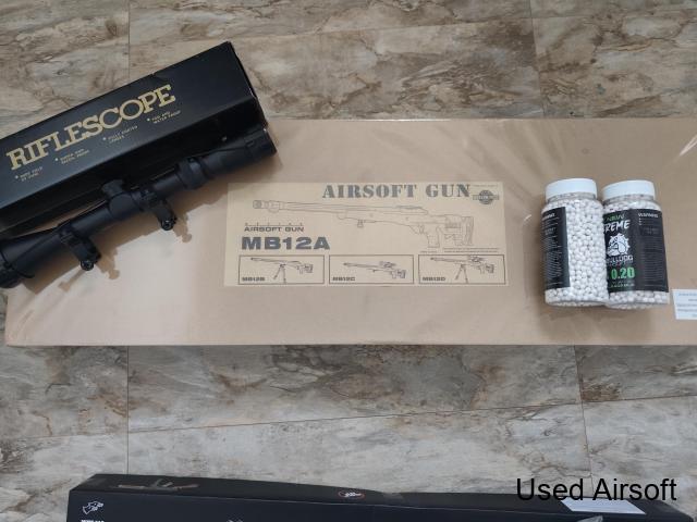 Brand new still in a box with brand new scope and two bottles with BB`s